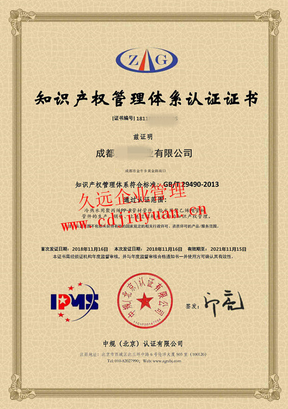 知識產(chǎn)權管理體系認證證書